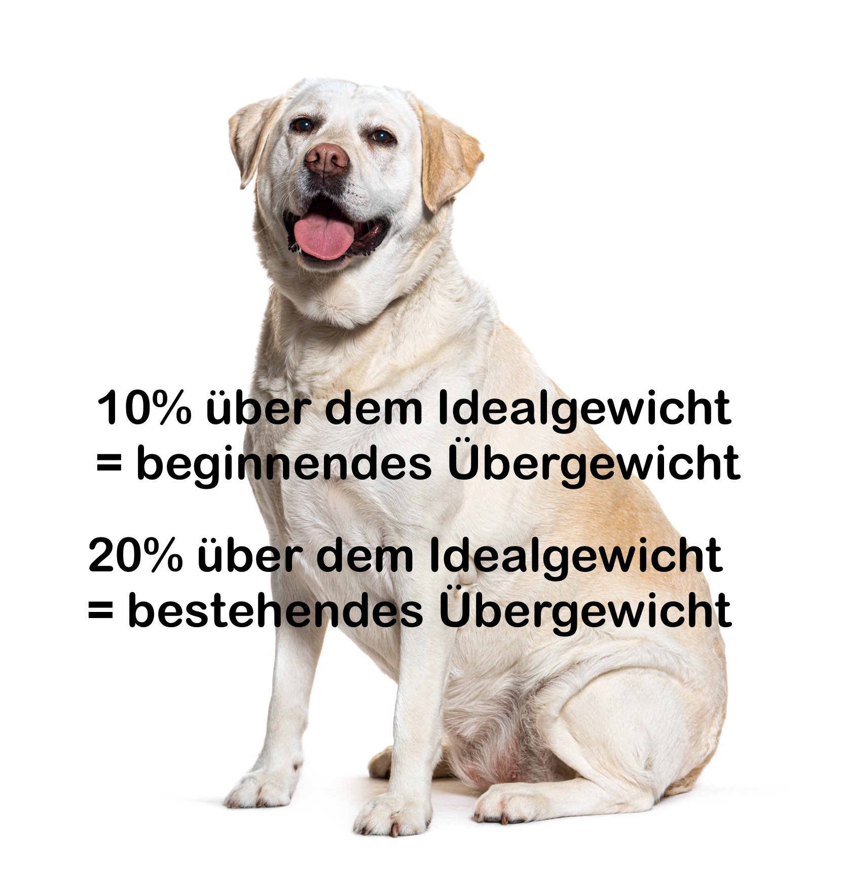 Übergewicht ist nicht nur schlecht für die Gelenke, sondern belastet auch das Herz-Kreislaufsystem, das Immunsystem und erhöht das Risiko von Narkosen, sowie an Tumoren oder Diabetes zu erkranken. Außerdem verkürzt Übergewicht die Lebenserwartung ! Verglichen mit Hunden, die ihr Leben lang schlank sind, sterben übergewichtige Hunde im Durchschnitt zwei Jahre früher